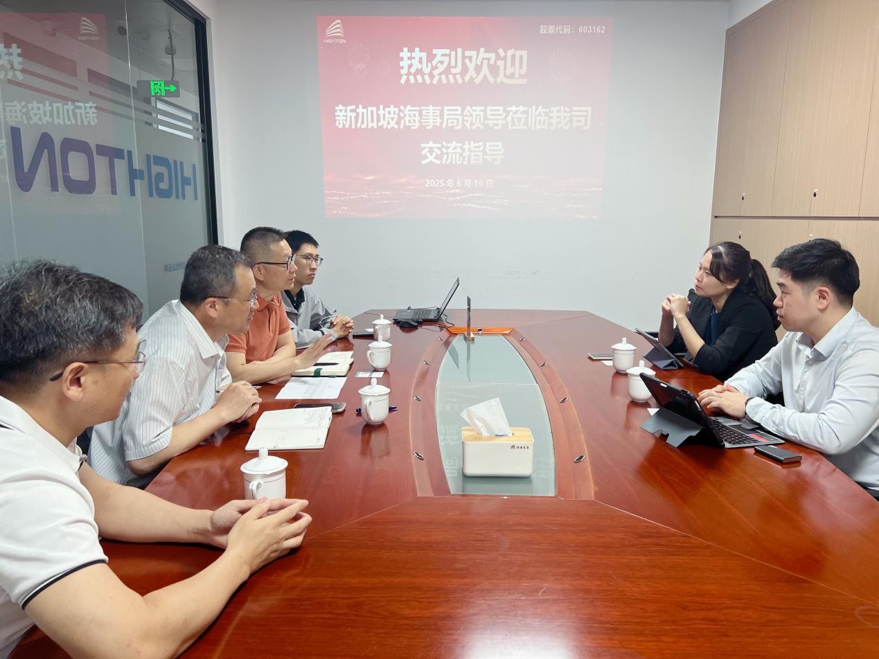 6月19日,新加坡海事局(MPA)官員Ina FOO和Edmund LIM一行到訪海通發(fā)展,雙方圍繞船舶脫碳戰(zhàn)略、綠船計劃、船舶注冊優(yōu)惠政策、免稅政策、新加坡人才招聘與培訓等議題展開深入交流。海通發(fā)展董事、副總經理、財務總監(jiān)劉國勇等人熱情接待,并就未來合作方向進行探討。
