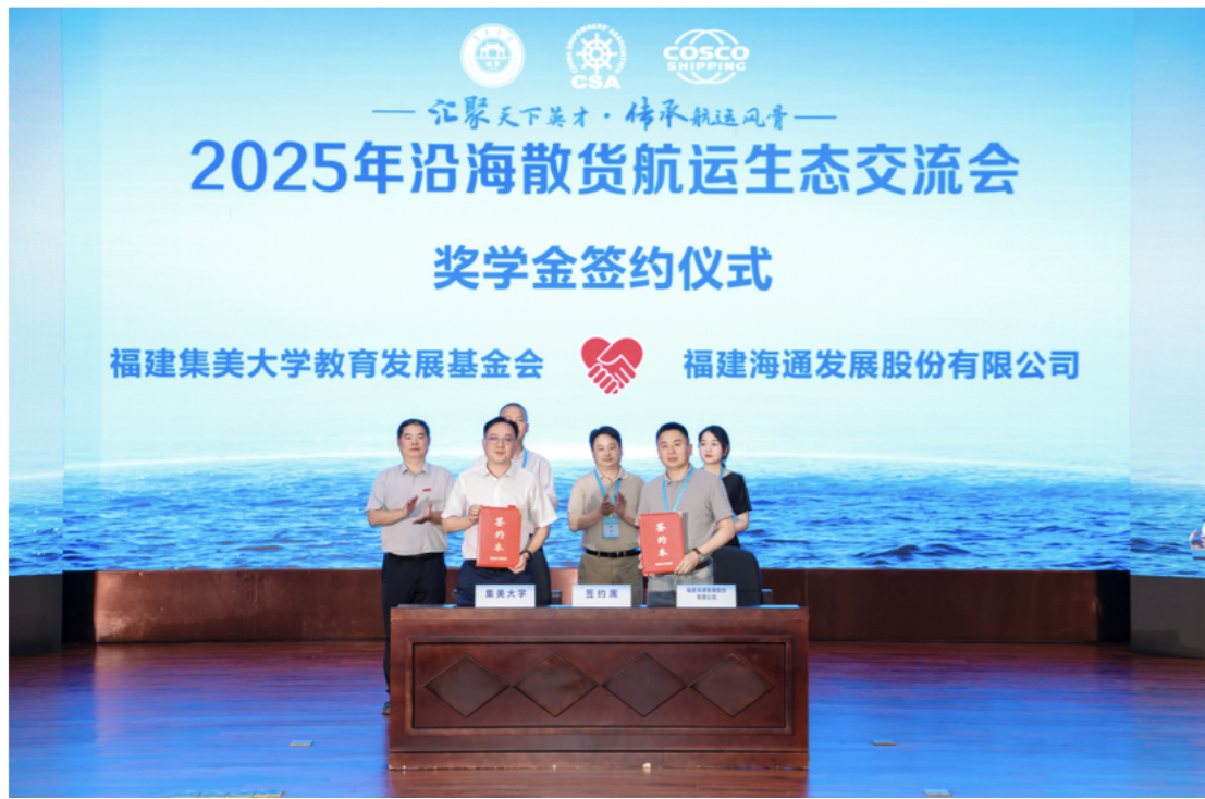 會上,海通發(fā)展與集美大學(xué)共同簽署了“海通獎學(xué)金”捐贈協(xié)議書,用于支持集美大學(xué)航運教育發(fā)展事業(yè),獎學(xué)金設(shè)立期限為5年。