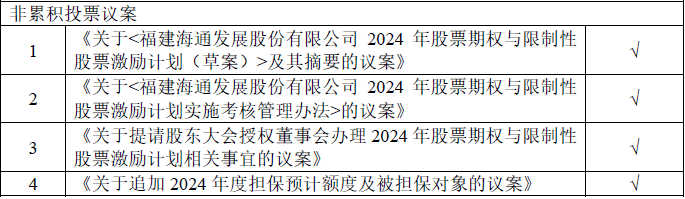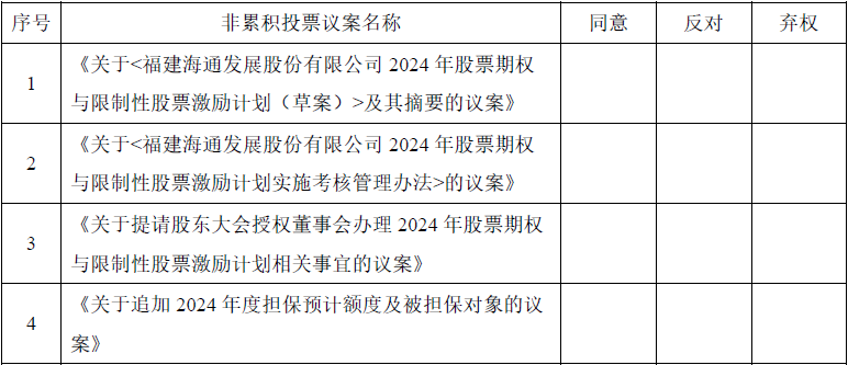 公司全體獨立董事一致同意由獨立董事翁國雄先生向公司全體股東征集本次股東大會擬審議2024年股票期權與限制性股票激勵計劃相關議案的投票權,具體內容詳見公司于2024年5月22日于上海證券交易所網(wǎng)站(www.sse.com.cn)及指定媒體披露的《福建海通發(fā)展股份有限公司關于獨立董事公開征集投票權的公告》(公告編號:2024-047)。